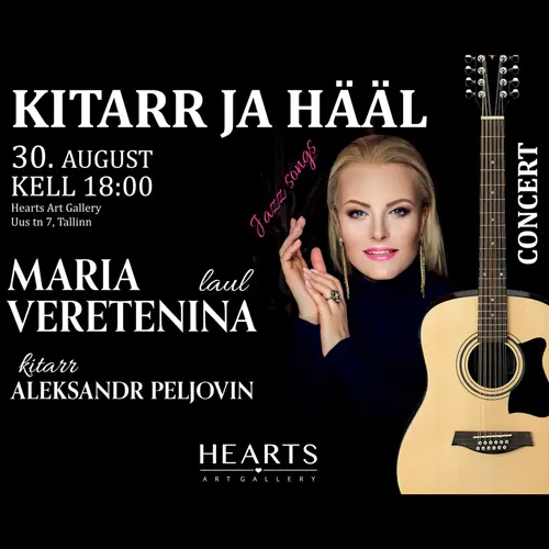 On August 30th, a unique concert will take place in the cozy place of the old Tallinn "Hearts Art Gallery" (Hearts Art Gallery, Uus tn 7, Tallinn)!